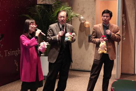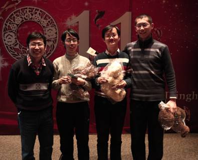 新年晚会精彩纷呈,宋浩、王晨谷的《Love Story》,刘婧的《人间》以及穿插其间的靓照识人、趣味问答、猜数字、抽奖等环节,不断掀起阵阵掌声,台上台下其乐融融。但全场最大的高潮,非压轴莫属:姚期智教授、王跃宣教授、段路明教授倾情演绎了奥运歌曲《我和你》。“为梦想,千里行,相会在北京。”——一句经典歌词,唱出了ITCS人共同的心声:ITCS最迷人的地方,就在于这里汇聚了一群志同道合的人,有理想、有梦想,并为之不懈奋斗。