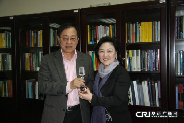 姚期智院士接受《CRI会客厅》节目赠送的纪念品