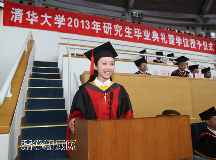 毕业生代表、土木系博士生王萌回顾了自己在清华的学习成长经历。王萌向辛勤培养自己的母校及师长们表达了由衷谢意。她说,在清华不仅收获了丰硕的学术成果、提高了自身的综合素质,更收获了为人为学、服务奉献、自强不息的清华精神。今后一定不辜负母校的期望,无论身处怎样的工作岗位,都将时刻铭记清华人所肩负的使命与责任,努力回馈社会、回报母校,成为各行各业的栋梁之才,作出清华人应有的贡献。