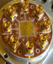 Figure: (Left) A transmon qubit embedded between two three-dimensional cavities. (Middle) Assembled coplanar waveguide resonators. (Right) SEM image of Josephson junctions.
